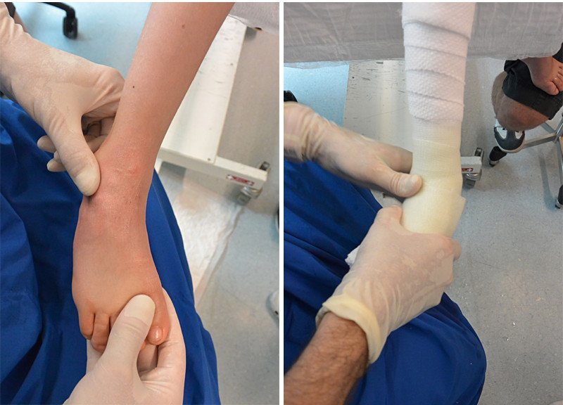 Die meist notwendige percutane (minimalinvasive) Tenotomie (Durchtrennung) der Achillessehne führen wir gemäss den Ponseti-Richtlinien ohne Narkose durch. Der kleine Eingriff lässt sich in Sedation des Kindes und die lokale Schmerzbehandlung der Haut mit einem Lidocain-Verband eine Stunde zuvor in Anwesenheit der Eltern problemlos durchführen.