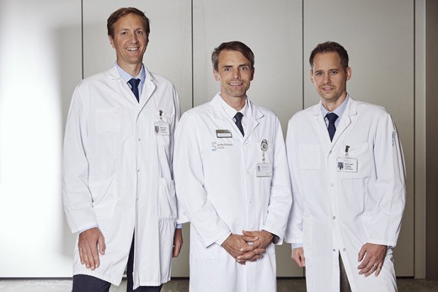 hintere Reihe von links: Dr. med. Tamás Fekete (Schulthess Klinik), Dr. med. Lukas Urbanschitz (Universitätsspital Basel), Dr. med. Benjamin Martens (Kantonspital St. Gallen), Dr. med. Harry Gebhard (Kantonspital Baselland), Dr. med. Tobias Pötzel (SPZ Nottwil), PD Dr. med. Kai Sprengel (St. Anna Luzern), PD Dr. med. Christoph Albers (Inselspital Bern), PD Dr. med. Ralph Schär (Inselspital Bern).