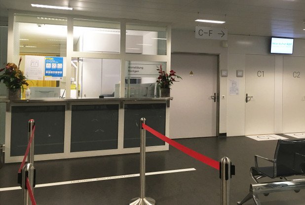 Jeder Patient erhält nun bei der Anmeldung am Empfang ein automatisch gedrucktes Ticket mit seiner Nummer. Auf dem Screen erscheint die Information, sobald seine Ticketnummer an der Reihe ist, in welche Kabine er sich begeben soll. Ein Wechsel auf dem Screen wird zudem über ein akustisches Signal angekündigt. Mit den zwei Kabinen pro Untersuchungsraum und dem Ticketsystem wird sichergestellt, dass jeder Patient zum richtigen Zeitpunkt am richtigen Ort ist.